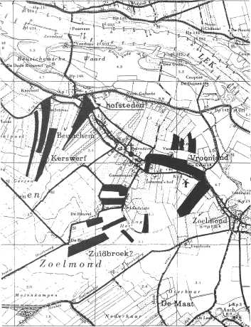 Van de site "Voet van Oud Heusden" EEN HOF TE BEUSICHEM Of deze bewoning continue is geweest is niet zeker. De Karolingische tijd biedt naast enkele schaarse schriftelijke gegevens betere aanknopingspunten. Langs de Lek, op de hoge oeverwallen, lagen vanouds de bruikbare landbouwgronden. Deze zijn te herkennen aan de vorm van de percelen. Hier vindt men de zogenaamde "blokverkaveling" terug. Dit waren veelal kleine onregelmatig gevormde akkers. De grond werd vanuit een centrale 'hof' geëxploiteerd. Het land werd bewerkt door onvrijen en horigen die verbonden waren aan deze hof. Sporen van het hofstelsel zijn door Dekker in het naburige Kromme Rijn gebied op verschillende plaatsen aangetoond. Een dergelijke hof is ook nawijsbaar in Beusichem. In de oudste goederen-lijst van St. Maarten wordt 'Buosinchem' al genoemd. Hoewel er over de hof relatief veel materiaal is, is er tot voor kort nooit onderzoek naar gedaan. Weliswaar was bekend wie de eigenaars van de hof waren, maar geen studie was nog verricht naar het grondbezit en de rechten die tot deze hof behoorden. Dit waren recht op tyns en tienden verbonden aan het grondbezit, maar ook zogenaamde hofdiensten. Naast het verrichten van periodieke arbeid ten behoeve van de heer bestonden deze ook bijzondere diensten, zoals "wagen diensten". Deze hadden betrekking op het beschikbaar stellen van een wagen en een span ossen. Deze hofdiensten werden op den duur veelal afgekocht. Het is mogelijk dat er in het overgeleverde materiaal uit later tijd nog restanten van zijn te traceren. Bekend is o.m. dat de hof enige tijd voor 1131 door het kapittel van St.Jan gekocht is. Vermast vermoedde dat de hof heeft toebehoord aan de familie van Kuyck. Wat de relatie tussen de hof en de familie van Bosinchem is geweest is echter minder duidelijk. Over de "hof ter Weyde" in de nabije omgeving en de zich hiernaar noemende familie is nog minder bekend. |